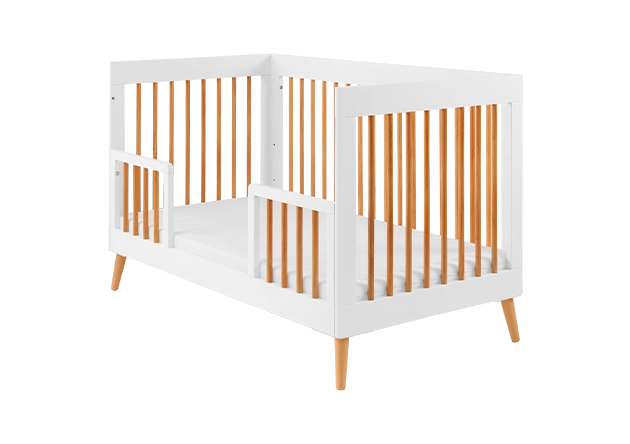 Why should a baby’s space to sleep, dream and play ever be dull? That’s why we’ve created this striking Scandinavian inspired wooden crib. With its warm, two tone natural wood finish, it adds character and charm to any nursery. Featuring an adjustable mattress height (paired with the Growgether Aero Fibre Mattress) and detachable sides, it effortlessly transforms into a toddler bed. Durable, stylish and built to last, this crib blends aesthetics with practicality in a way that feels just right.